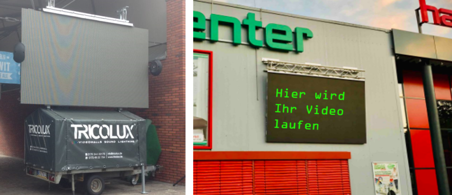 Das Segment Videowall wird in Kooperation mit der Firma TRICOLUX durchgeführt. Ihr Werbeclip wird abwechselnd von je 10 sec. eingespielt.